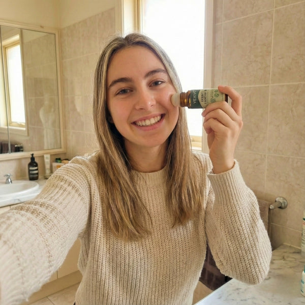On clean, dry skin, gently roll a small amount of oil where you want results. One to two passes is enough. Your skin should feel lightly coated, not oily.