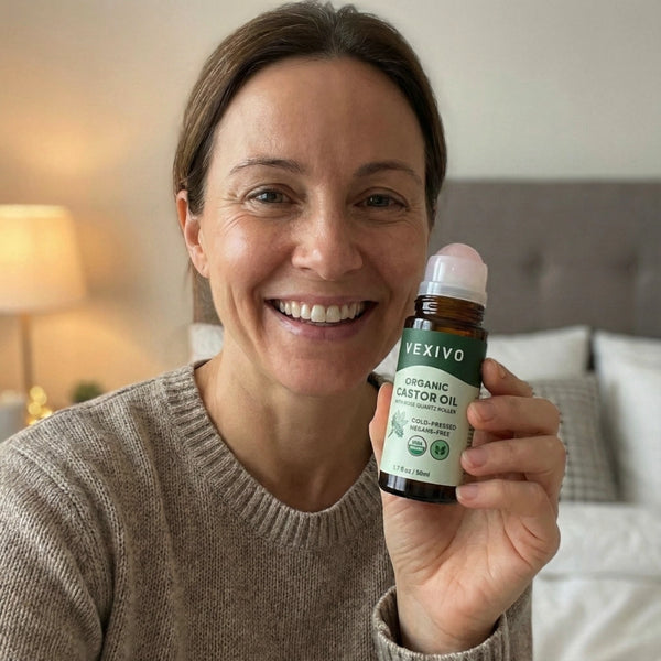 Vexivo is powered by 100% organic castor oil rich in ricinoleic acid, a compound known to support liver function, improve circulation, and reduce bloating. It helps flush excess water, ease digestion, and calm inflammation. The formula absorbs quickly, applies easily, and leaves no mess. 💧🌿🧘♀️✨